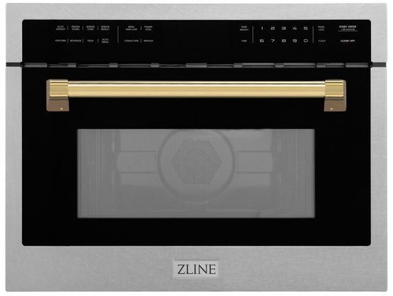 Luxury isn’t meant to be desired - it’s meant to be attainable. Inspired by Lake Tahoe, USA, the ZLINE Autograph Edition 24" 1.6 cu ft. Built-in Convection Microwave Oven in Fingerprint Resistant Satin Stainless Steel with Polished Gold Accents (MWOZ-24-SS-G) provides a professional culinary experience by pairing unmatched performance with timelessRead More