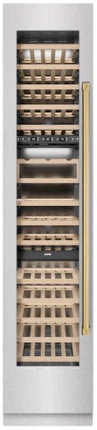 Luxury isn’t meant to be left desired—it’s meant to be attainable. The ZLINE Autograph Edition 18 in. 9.0 cu. ft. Triple Zone 68 Bottle Left Hinge Column Wine Cooler in Satin Stainless Steel with Polished Gold Accents (RCWVLZ-SN-18-G) combines the convenience of a sleek integrated tall column built-in design with triple zone temperature control and spacious storage capacity for up to 68 wine bottles. Achieve ZLINE Attainable Luxury® excellence with innovative features that showcase your collection in unparalleled style and ensure that every pour is perfection.Read More